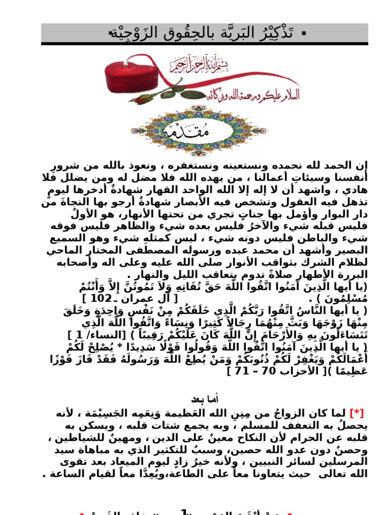 ت ذ ك ي ر الب ر ية بالح قوق الزوجية